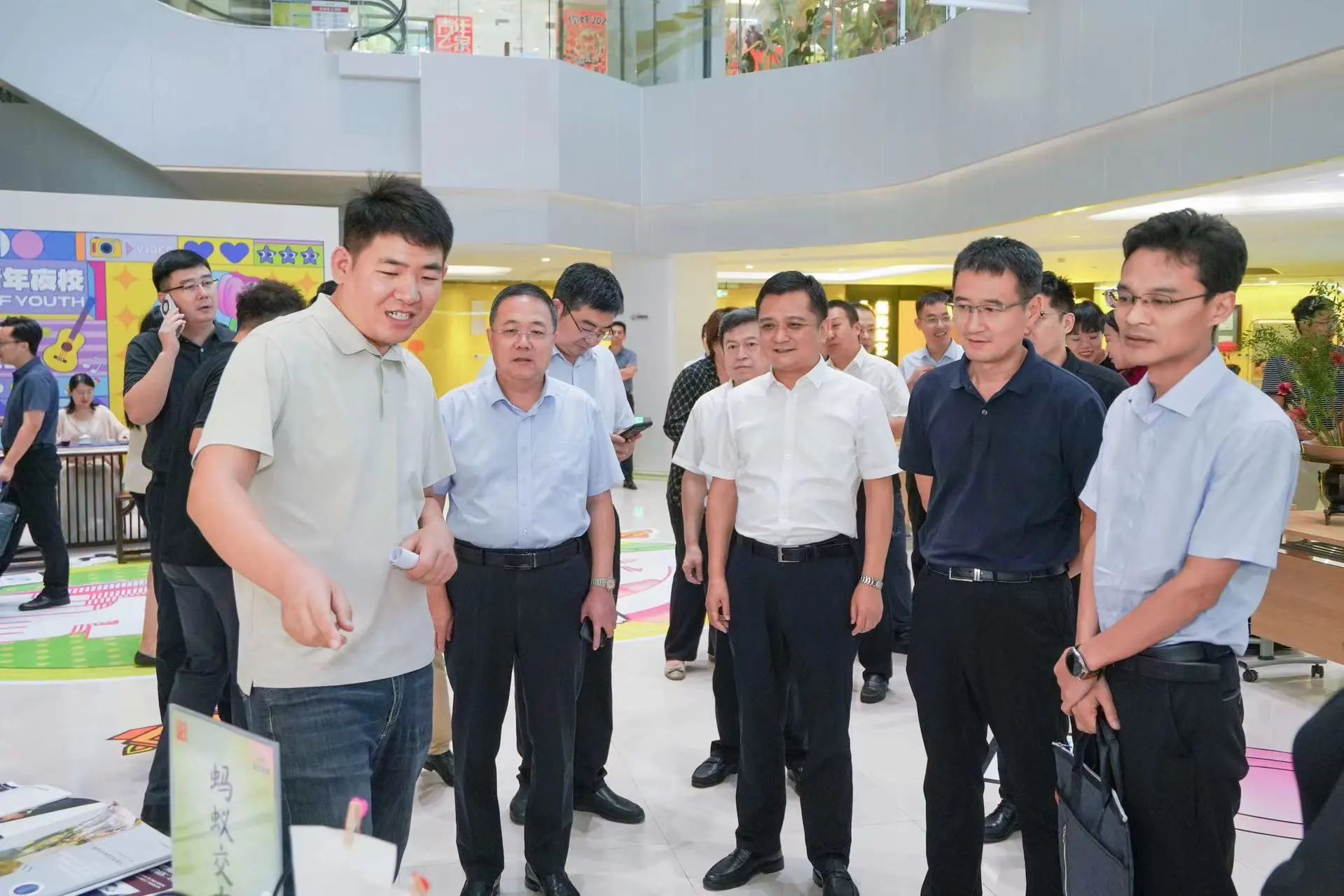 會前,與會領導參觀了集團展廳、集團青年夜校教學場地及夜校市集攤位。
