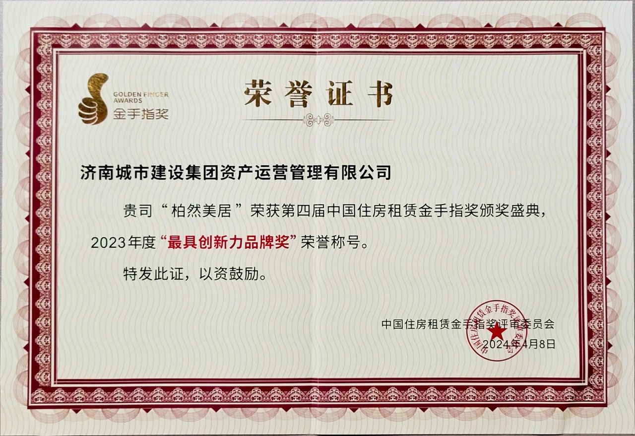 近日,在2024中國住房租賃企業(yè)家領(lǐng)袖峰會暨第四屆白云山論壇上,公布了2023年度“推動中國住房租賃發(fā)展進(jìn)程”系列榜單,濟(jì)南城市建設(shè)集團(tuán)資產(chǎn)運(yùn)營管理有限公司成功上榜2023年度“推動中國住房租賃發(fā)展進(jìn)程”百強(qiáng)企業(yè),公司運(yùn)營的保障性租賃住房“柏然美居”品牌榮獲2023年度“最具創(chuàng)新力品牌獎”榮譽(yù)。