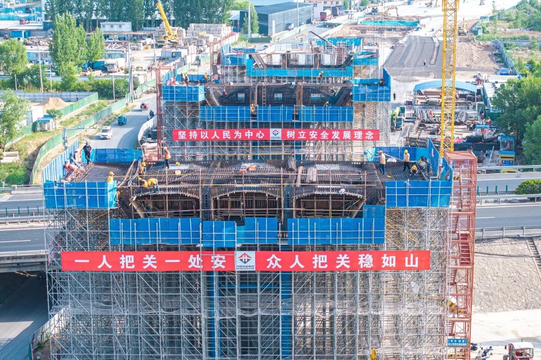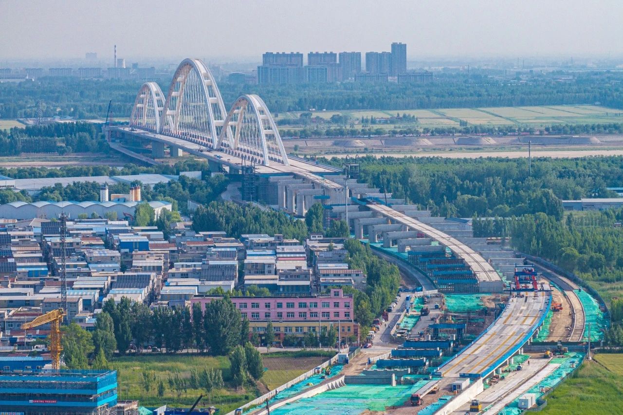 截至目前,濟南黃河齊魯大橋項目橋梁樁基施工全部完成,正積極推進項目地面道路、承臺、墩柱、蓋梁、現澆箱梁及橋面系施工。