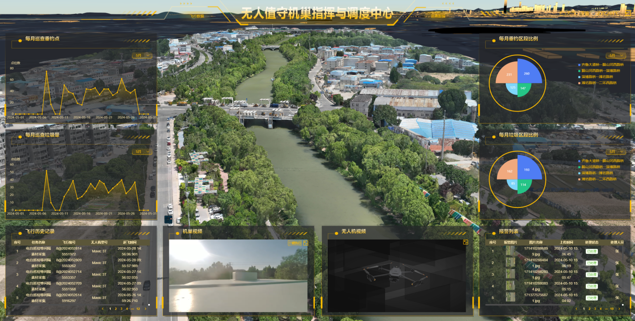 該機巢布置于湖心島,可對華山景區水面、綠化共計6.25平方公里的區域進行日常巡檢。該機巢具備無人機定時自動收放、飛行、充電功能,徹底實現無人化值守,支持對無人機及載荷遠程控制。同時,自主巡檢系統通過AI算法,對無人機獲取的低空原始數據定位分析,如發現問題,經管理專員核查后,可通過業務處理平臺app派發至運營人員銷項處理。