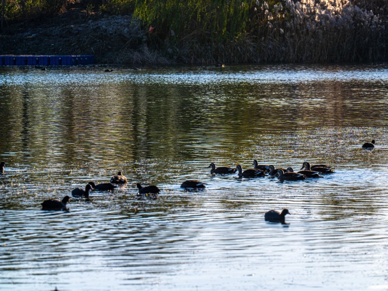 羽翼輕展映寒暉,群鳥嬉戲逐水歸。秋末冬初,上百只國家二級保護(hù)動物白骨頂雞如約來到濟(jì)南華山景區(qū)棲息,赴冬日的約定。