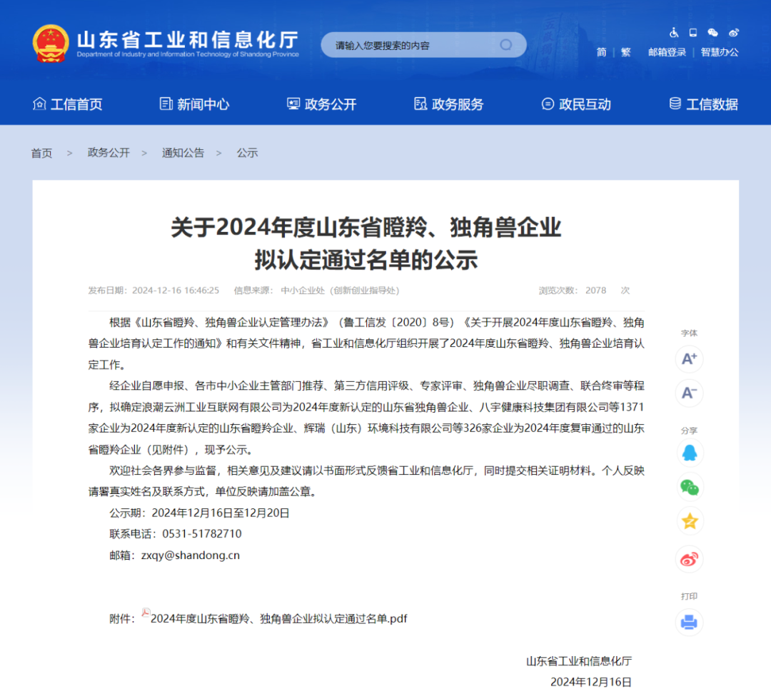 近日,山東省工業(yè)和信息化廳發(fā)布了《關(guān)于2024年度山東省瞪羚、獨角獸企業(yè)擬認定通過名單的公示》,建設(shè)集團所屬山東金宇信息科技集團有限公司通過2024年度山東省瞪羚企業(yè)復(fù)審,建設(shè)集團所屬山東金衢設(shè)計咨詢集團有限公司獲2024年度擬新認定省級瞪羚企業(yè)。