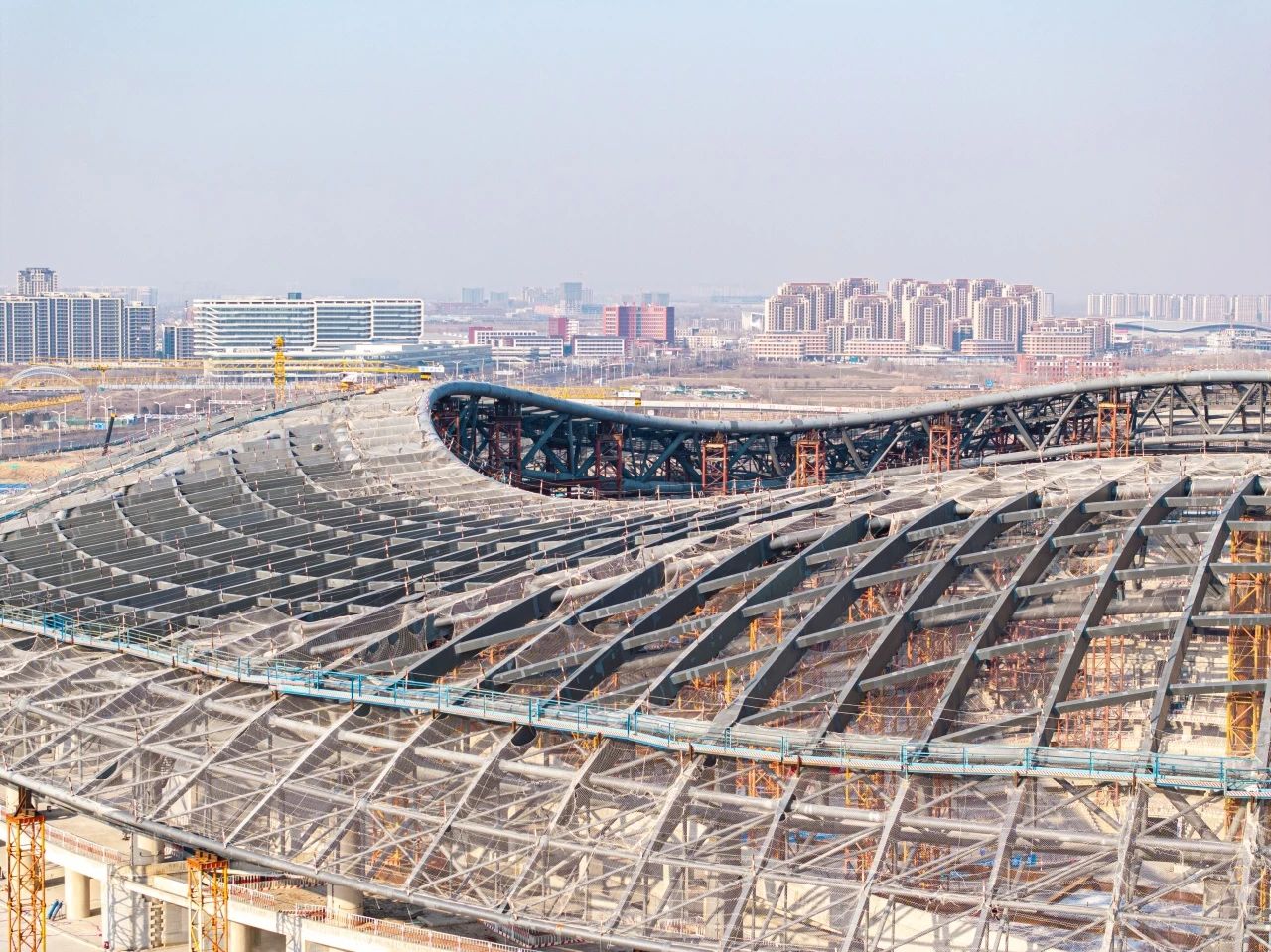 近日,由濟南城市建設(shè)集團受委托建設(shè)的濟南黃河體育中心足球場項目屋蓋鋼結(jié)構(gòu)支撐體系卸載工作完成,項目全面完成鋼結(jié)構(gòu)施工,下一步將進入索膜結(jié)構(gòu)、幕墻和金屬屋面施工階段。按照施工安排,該項目預(yù)計2026年12月達到竣工驗收條件。