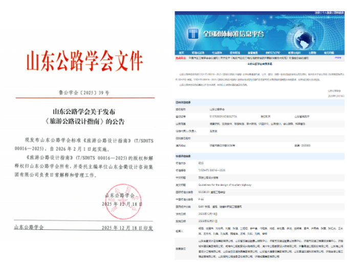 近日,由建設(shè)集團(tuán)所屬山東金衢設(shè)計(jì)咨詢集團(tuán)有限公司主編的《旅游公路設(shè)計(jì)指南》(以下簡(jiǎn)稱《指南》)正式發(fā)布,將于2026年2月1日全面實(shí)施。作為山東省首部系統(tǒng)規(guī)范旅游公路設(shè)計(jì)的技術(shù)標(biāo)準(zhǔn),《指南》填補(bǔ)了省內(nèi)該領(lǐng)域標(biāo)準(zhǔn)體系的空白,標(biāo)志著山東“交通+旅游”深度融合邁入標(biāo)準(zhǔn)化發(fā)展新階段。