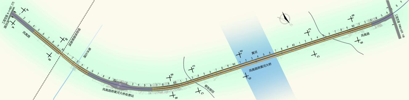 鳳凰路北延工程位于濟南市歷城區、高新區、濟陽縣,路線南起壩王路與荷花路交叉口,接現狀壩王路,依次跨越邯膠鐵路聯絡線、南水北調工程濟東明渠后繼續往北,在小河套村向西北方向延伸,跨越黃河后,終點位于遠期規劃主干路與G220交叉口處。項目全長6659.2米,其中,黃河特大橋長度為3668米,兩端接線長度為2991.2米,包括大橋1座,平面交叉2處,涵洞11道。
